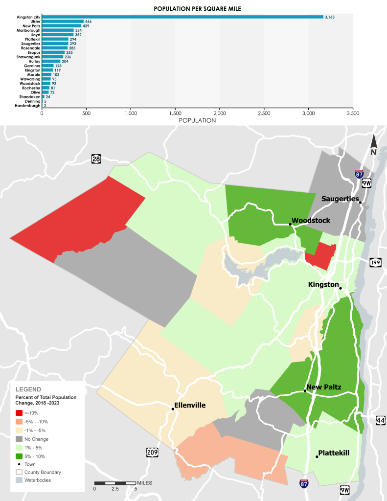 It is challenging to predict Ulster County’s population over several decades with any level of certainty. In general areas south of New Paltz are likely to see increases in population over time due to proximity to employment centers outside of the County while the City of Kingston area enjoys renewed interest due to costs, quality of life, and opportunities for networking with others from the metropolitan area.